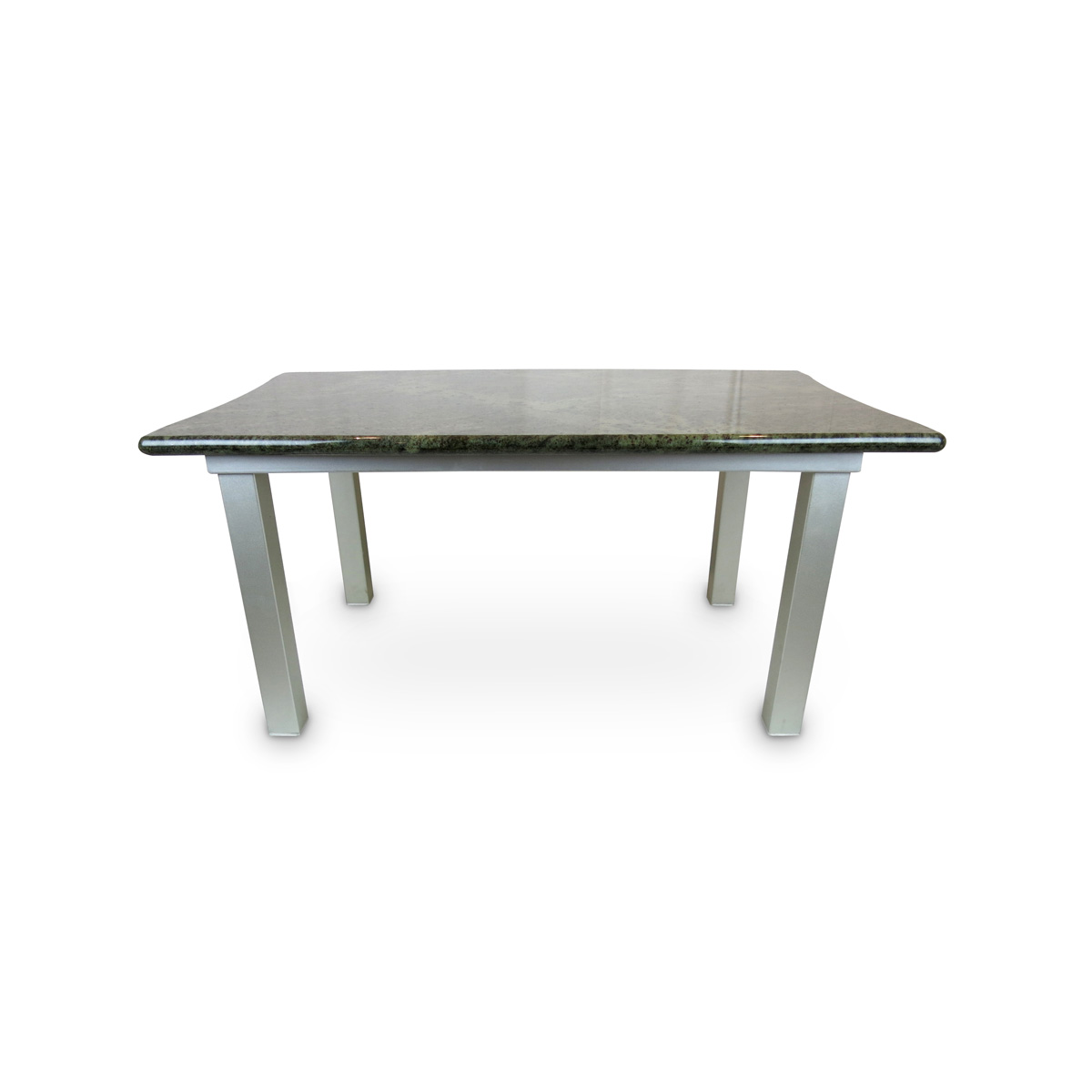 A truly elegant green granite dining table with curve cut sides and 1-1/2” radius edge. Constructed with the main dining area in mind, this 285 pound piece of Indian Granite can be displayed indoors or out.